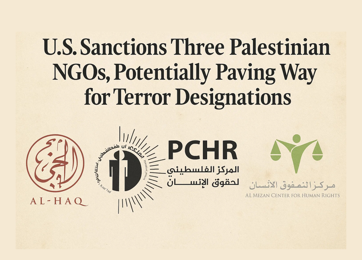 U.S. Sanctions Three Palestinian NGOs, Potentially Paving Way for Terror Designations