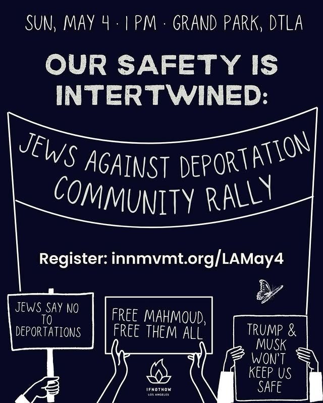 Jewish anti-Zionist group IfNotnow will hold a “Jews against deportation” rally on May 4 at Los Angeles’ Grand Park.