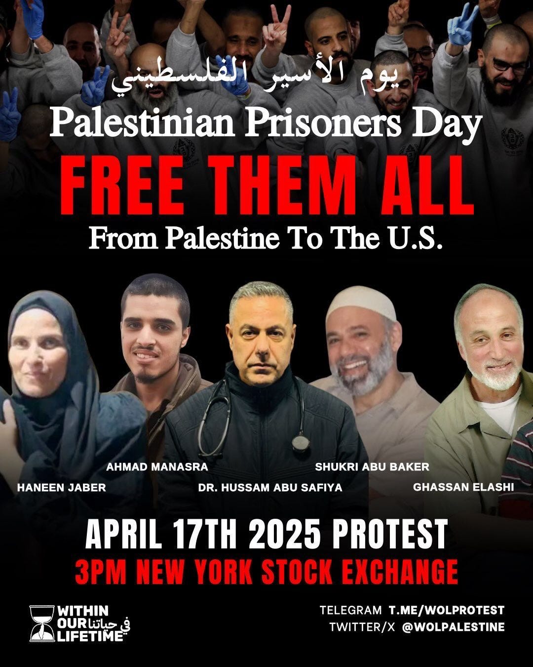 For “Palestinian Prisoners Day,” WOL is planning a “Free Them All: From Palestine to the U.S.” protest at the New York Stock Exchange on April 17 at 3 PM.