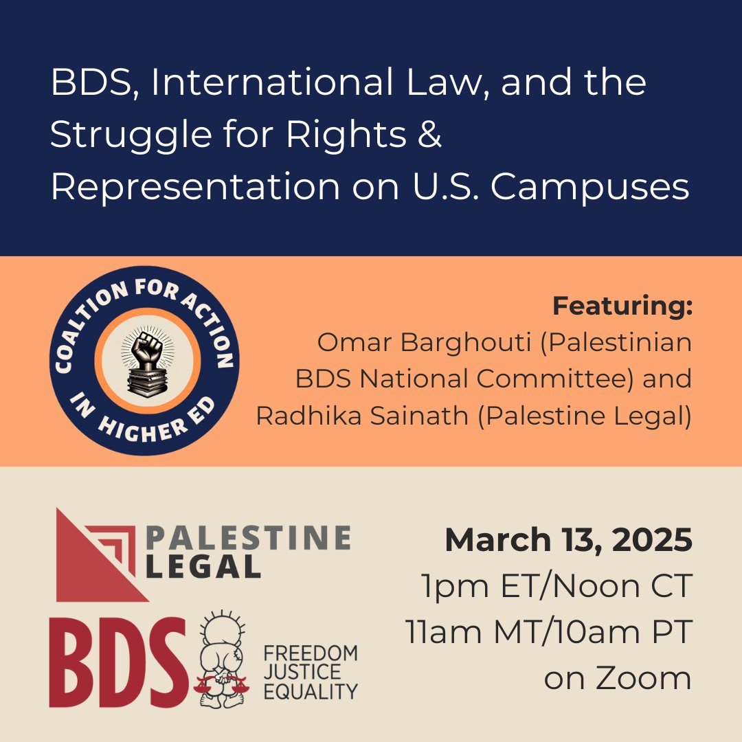 The BDS National Committee (BNC), Palestine Legal, and the Coalition for Action in Higher Education will hold a webinar today featuring Omar Barghouti and Radhika Sainath. One of BNC’s founding members is PNIF, a coalition that includes US-designated terrorist groups Hamas, Palestinian Islamic Jihad (PIJ), and the Popular Front for the Liberation of Palestine (PFLP).