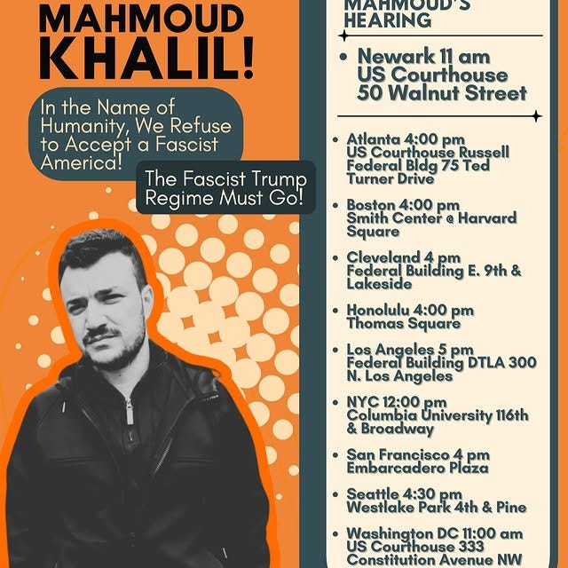 1. U.S.-Wide Protests for Mahmoud Khalil