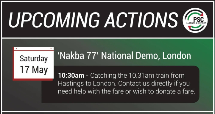 On May 17 at 10:30am, Palestine Solidarity Campaign will host a ‘Nakba 77’ National Demo in London.