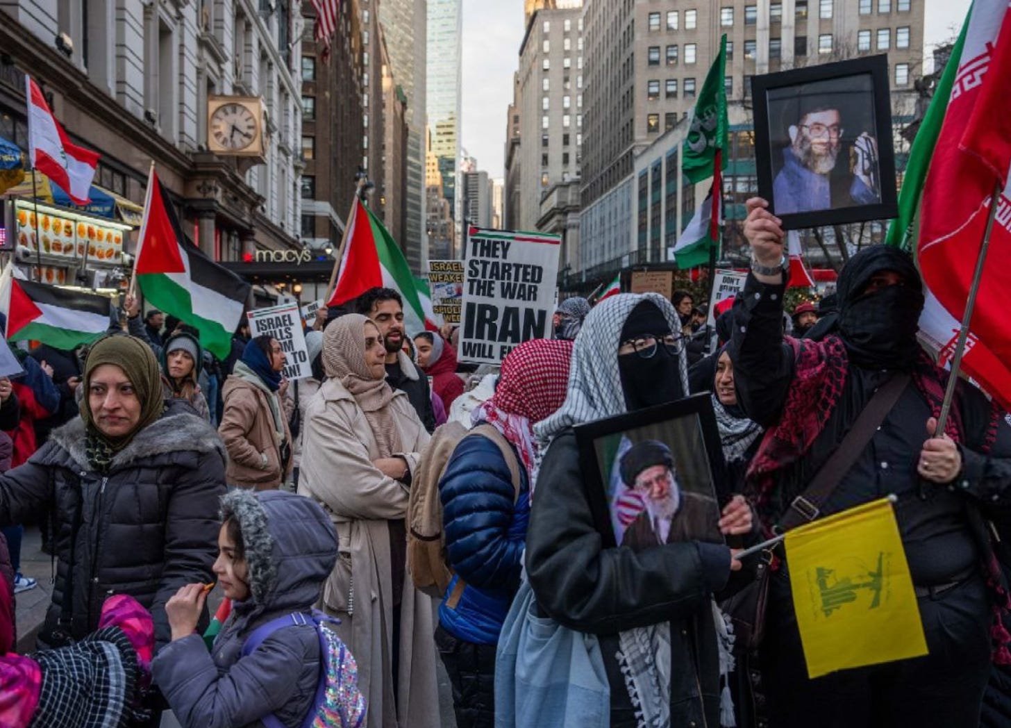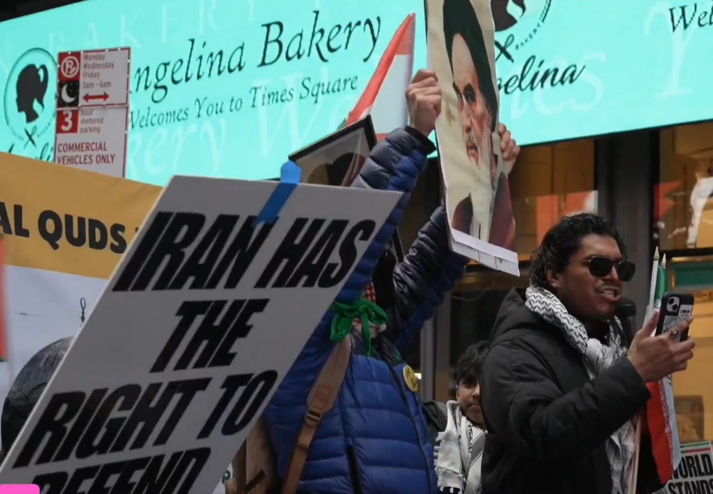 The New York protest began in Times Square on March 13 and proceeded through midtown Manhattan, drawing hundreds. Organizers affiliated with the Bronx Anti-War Coalition, Pal-Awda, and the Workers World Party explicitly praised terrorist leaders by name.