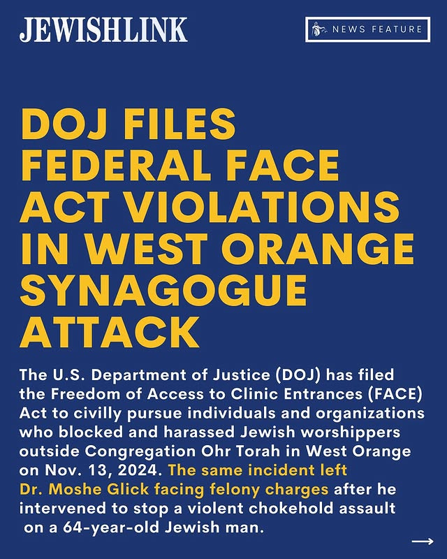 This marked the first time the FACE Act has been used to protect religious worship at a synagogue, following a November 2024 incident where protesters allegedly intimidated and assaulted Jewish worshipers at Congregation Ohr Torah in West Orange, New Jersey.