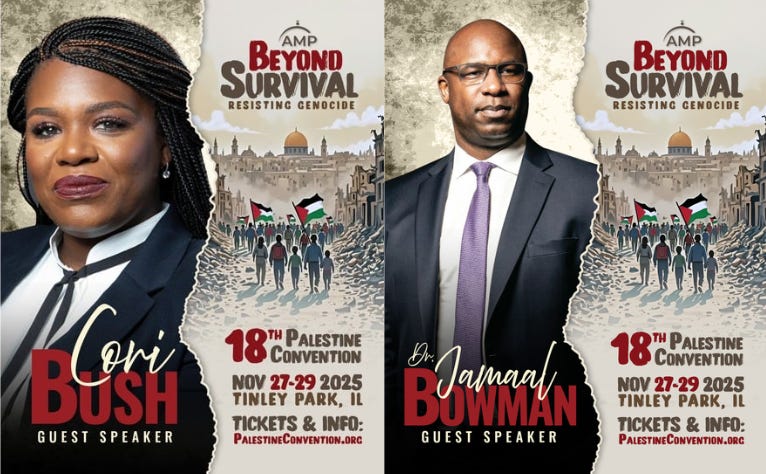 AMP's 18th Palestine Convention features Ramzy Baroud, whose outlet employed a Hamas operative who held Israeli hostages captive in Gaza — and former "Squad" members Cori Bush and Jamaal Bowman