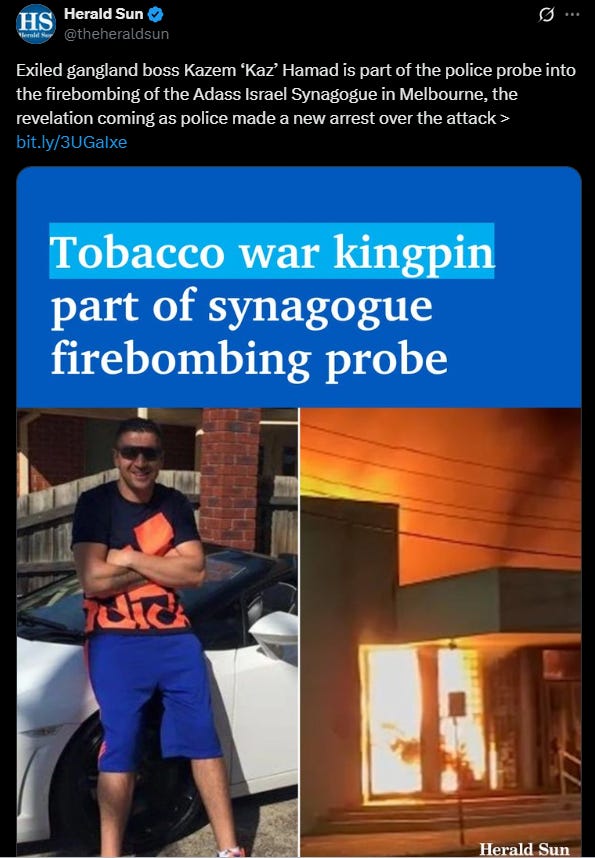 Intelligence sources have identified Melbourne criminal kingpin Kazem Hamad as a suspected conspirator in the synagogue firebombing, with evidence suggesting he worked with foreign operatives to facilitate the attack. In the months following the initial investigation, counterterrorism officials gathered additional intelligence pointing to Hamad's deeper involvement, including financial payments that were traced back through the network of intermediaries used by Iranian handlers.