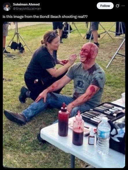 In the immediate aftermath of the Bondi Hanukkah terror attack that claimed 16 lives, including Holocaust survivor Alexander Kleytman, rabbi Eli Schlanger, and a 10-year-old girl, over 163,000 social media posts propagated false flag conspiracy theories on X. Among those hospitalized was human rights lawyer Arsen Ostrovsky, who became the target of AI-generated disinformation when foreign influencers circulated a fabricated image purporting to show a makeup artist applying fake blood to his face.