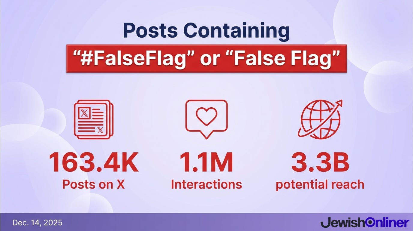 The coordinated disinformation campaign generated 1.1 million interactions and reached a potential audience of 3.3 billion users, according to social media analysis data from December 14. Among posts containing “false flag” or “#FalseFlag,” 15.3% also referenced Mossad, Israel’s intelligence agency, suggesting deliberate attempts to implicate Israeli authorities in staging the attack on Jewish worshippers.