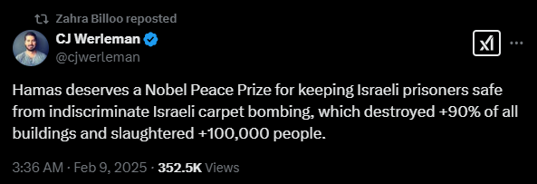 Zahra Billoo, the chair of the Council on American-Islamic Relations (CAIR) San Francisco Bay Area (SFBA), has a long and well-documented history of making anti-Semitic remarks and defending terrorist organizations. Most recently, Billoo reposted an X post that shockingly claimed, “Hamas deserves a Nobel Peace Prize for keeping Israeli prisoners safe from indiscriminate Israeli carpet bombing.” Her social media activity and public statements reveal a pattern of extremist rhetoric that glorifies Hamas, Hezbollah, and other militant groups, while spreading hateful and dangerous narratives about Jews and Israel.