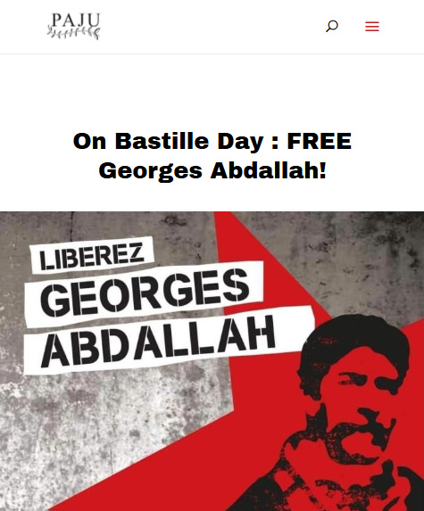 Additionally, PAJU organized an event calling for the release of Georges Ibrahim Abdallah, a Lebanese communist and member of the PFLP. Abdallah was sentenced to life imprisonment in 1987 for his role in orchestrating the 1982 murders of U.S. military attaché Charles Ray and Israeli diplomat Yacov Barsimantov in Paris. He was also charged in connection with an attempted murder of U.S. Consul General Robert Homme in Strasbourg in 1984. Abdallah was released from French imprisonment in July 2025 after serving 38 years.