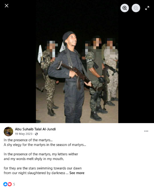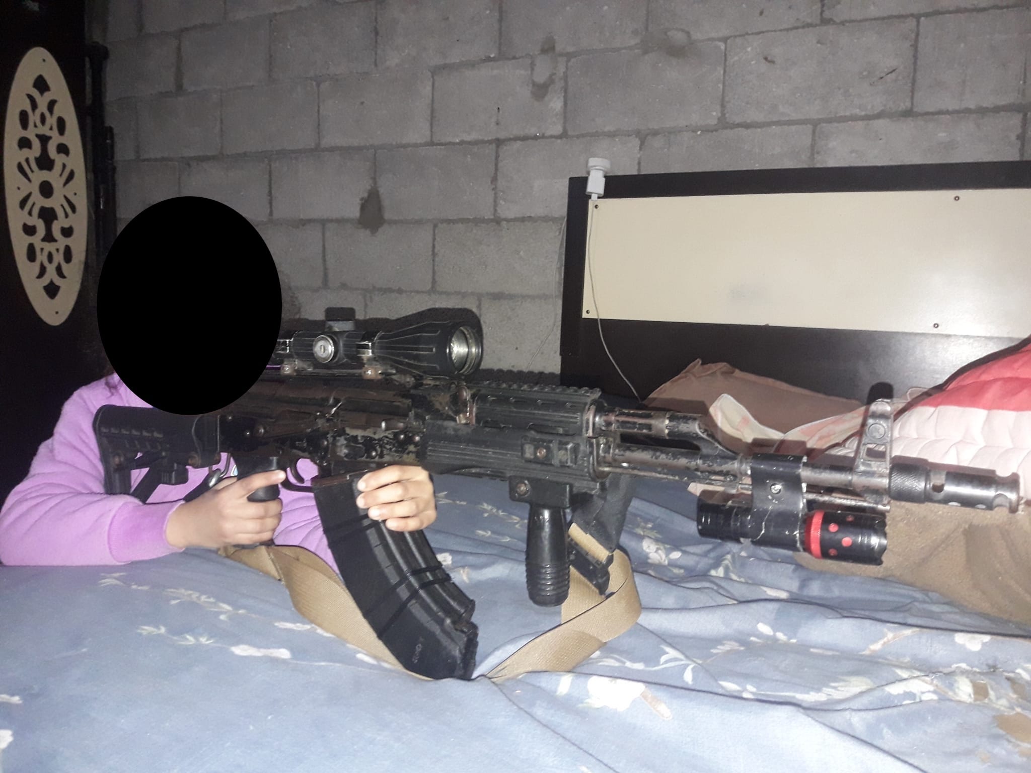 Photographs from the father’s Facebook accounts show al-Jundia posing with weapons and wearing a vest emblazoned with the Mujahideen Brigades logo—a heartbreaking image of a child denied the chance at a normal childhood.
