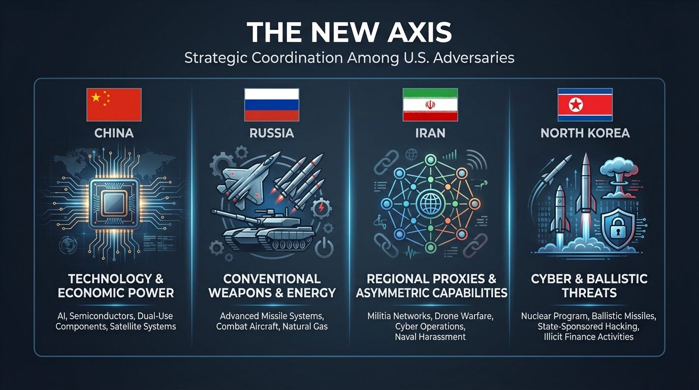The report comes amid broader concerns about coordination among U.S. adversaries. China, Russia, Iran, and North Korea are increasingly conducting joint military exercises and sharing technology, presenting challenges across multiple theaters simultaneously.