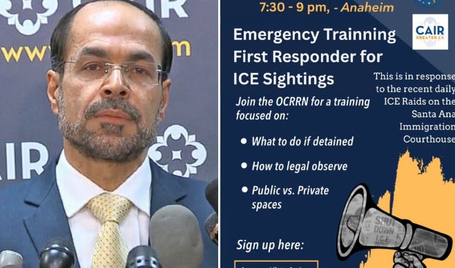 The Council on American‑Islamic Relations (CAIR) chapter in Greater LA is actively advertising “Emergency ICE First Responder Training’” workshops designed to assist undocumented immigrants in countering U.S. Immigration and Customs Enforcement (ICE), with the next event taking place on June 9th in an undisclosed location in Anaheim, CA. These sessions, which CAIR describes as "legal aid," may inadvertently help individuals, including those on terrorism watchlists, evade federal enforcement actions.