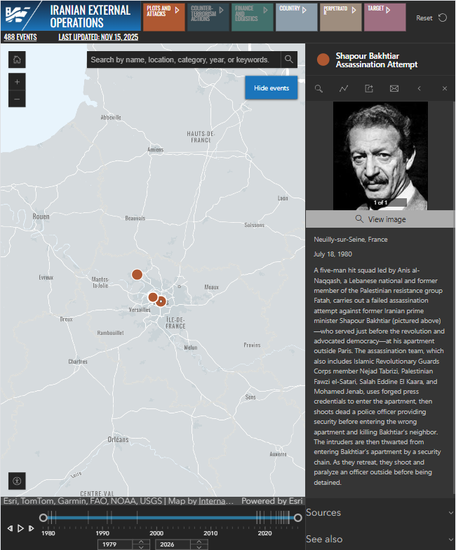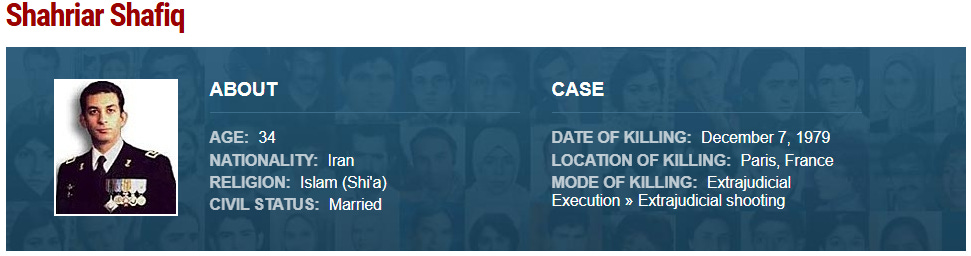 The report traces a decades-long pattern of Iranian state violence on French soil. Documented assassinations include Shahriar Shafiq, nephew of the last Shah, in 1979; Cyrus Elahi in 1990; and former Prime Minister Shapour Bakhtiar in 1991. These historical cases establish a pattern that continues into the present.