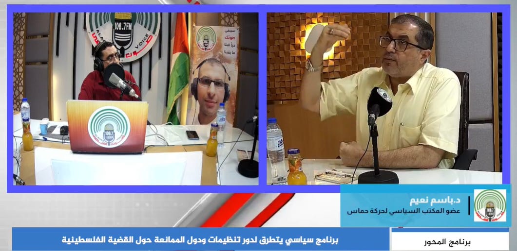 The station has featured interviews with prominent Hamas officials such as Bassem Naim and Hammad Al-Raqab.