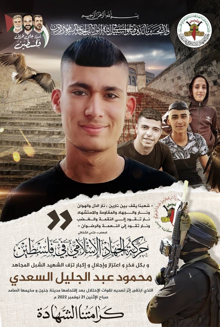 In November 2022, Mahmoud Al-Saadi, a youth trainer at the theatre, was eliminated during clashes with the Israeli Defense Forces (IDF). PIJ issued a statement describing him as a "martyr fighter who ascended to paradise... while confronting the invasion of the Jenin camp."
