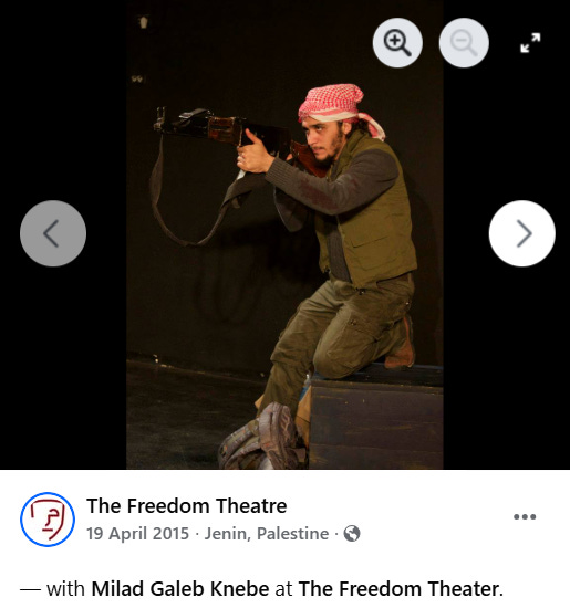 Similarly, on May 15, 2022, the theatre informed its audience of the death of Daoud Zubeidi, Zakaria’s brother, during clashes with the IDF, describing him as a "martyr.” However, images of Daoud surfaced showing him posing with an assault rifle, further solidifying his active involvement in militant activities.