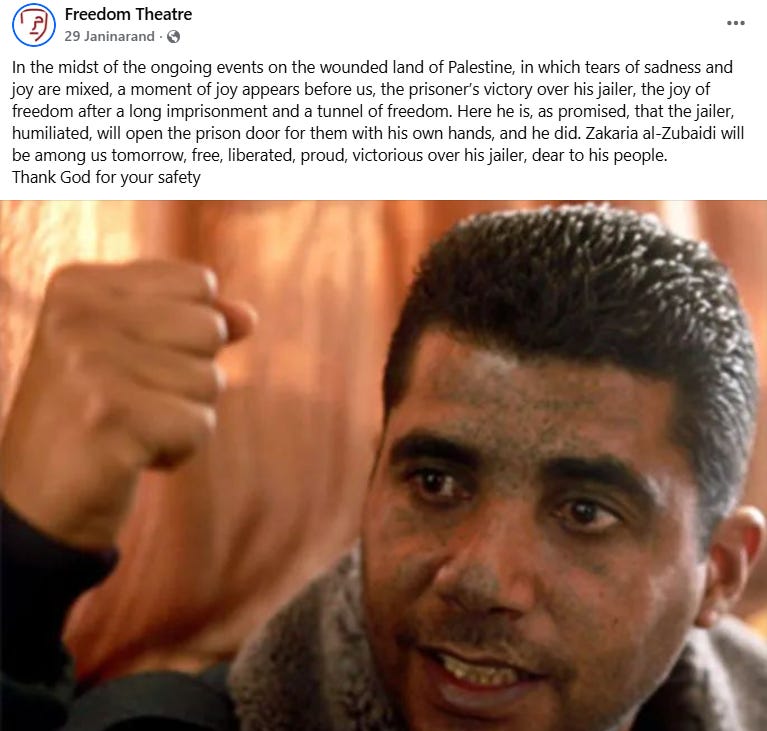 The article also mentions how Zubeidi co-founded the Jenin Freedom Theatre (TFT) with his brother Abdulrahman Zubeidi, which organizes drama workshops and performances promoted as a form of “cultural resistance” against Israel. However, the theatre, which is registered in both the Palestinian Authority and Sweden, has notable ties and associations with designated terrorist groups, including Hamas, the Al-Aqsa Martyrs' Brigades (AMB), the Popular Front for the Liberation of Palestine (PFLP), and Palestinian Islamic Jihad (PIJ). These associations raise concerns about its true objectives and whether it is promoting terrorism under the guise of cultural expression.