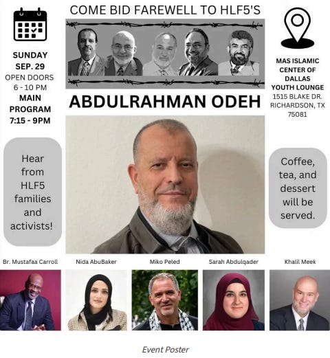 In 2024, the Muslim American Society in Dallas hosted an event featuring Abdulrahman Odeh, one of the five convicted Holy Land Foundation terror financiers. Attending the celebration were Khalil Meek and Mustafaa Carroll, leaders of the Council on American-Islamic Relations’ DFW branch—recently designated by Governor Abbott’s office due to founding officials’ ties to Hamas and the Muslim Brotherhood.