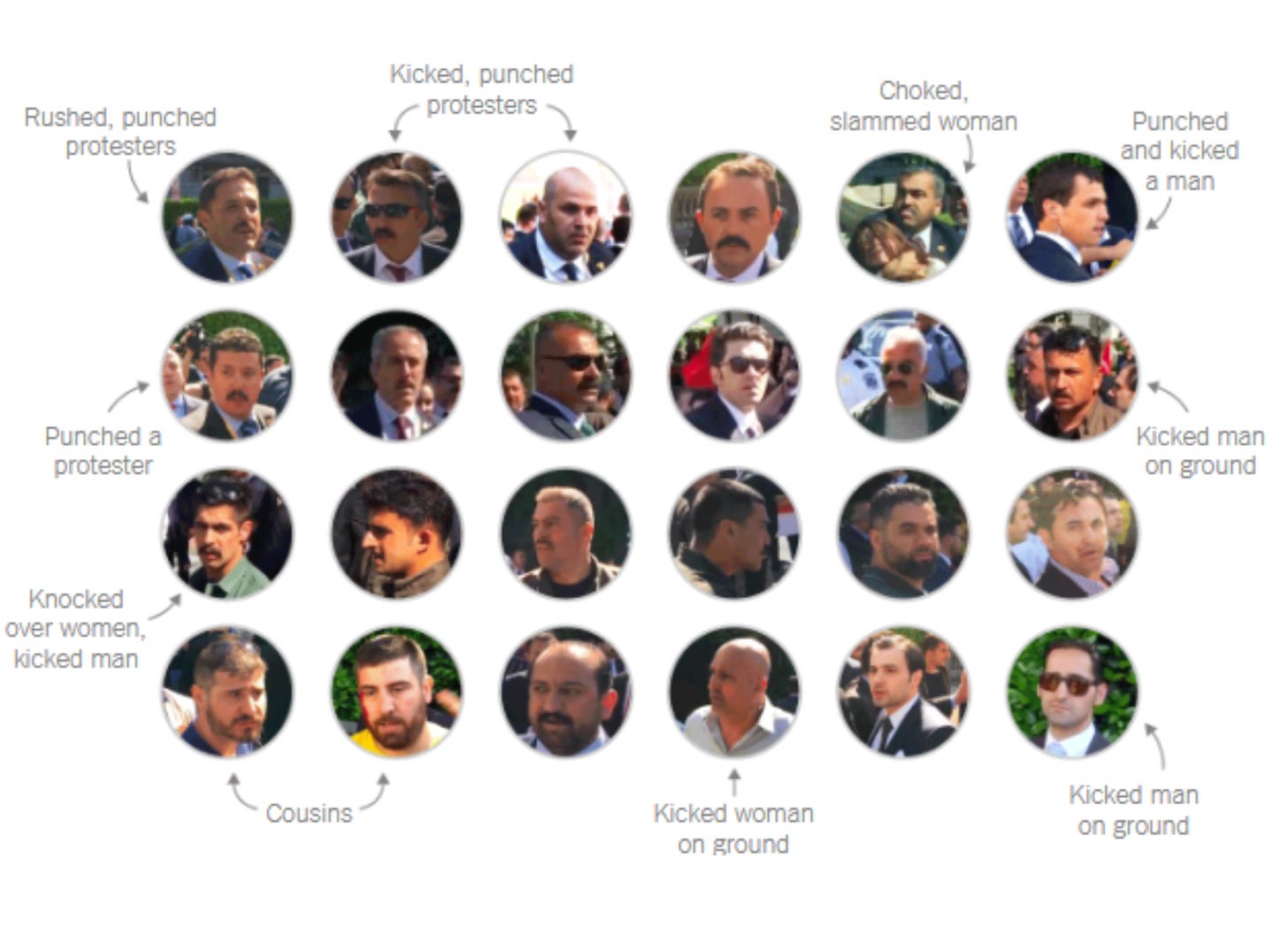 The violence occurred within an hour of President Recep Tayyip Erdogan’s White House meeting with then-President Donald Trump. Turkish security personnel and pro-government supporters overwhelmed law enforcement barriers maintained by Metropolitan Police, Secret Service, and Diplomatic Security personnel, then charged demonstrators positioned across the street.
