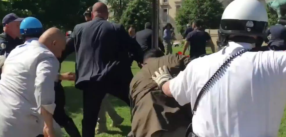 Among the documented attacks: Hulya Kartal lost consciousness after being struck in the head, then sustained repeated kicks while lying motionless as Turkish personnel filmed the scene. Ceren Borazan fled across Sheridan Circle before being dragged from a vehicle, restrained in a chokehold while hearing death threats, and thrown to the pavement. Heewa Arya attempted to protect his young daughter before being knocked down and beaten.