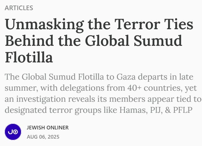 Jewish Onliner published details about the "Global Sumud Flotilla" on August 6 linking members of its Steering Committee to Hamas. Yesterday, Israel confirmed Hamas' involvement in the campaign.