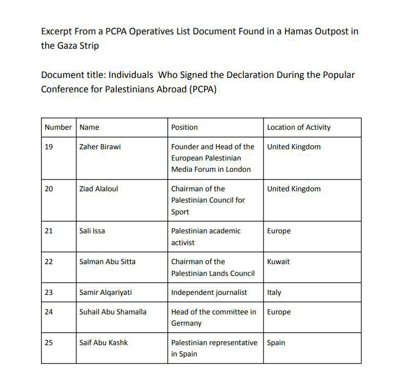 The Israeli documents included a 2021 letter from former Hamas leader Ismail Haniyeh explicitly endorsing the PCPA organization.