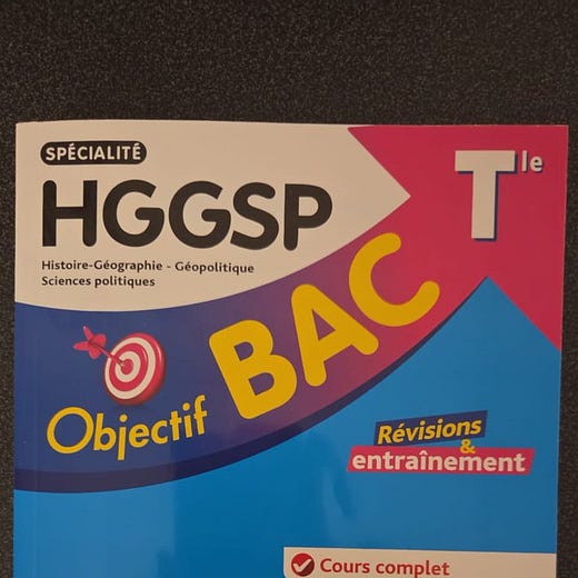 The textbook, “Objectif Bac” for the HGGSP (History-Geography, Geopolitics and Political Sciences) curriculum, was authored by Vincent Adoumié, one of France’s most credentialed educators, holding dual agrégations in both history and geography and teaching France’s elite preparatory classes.