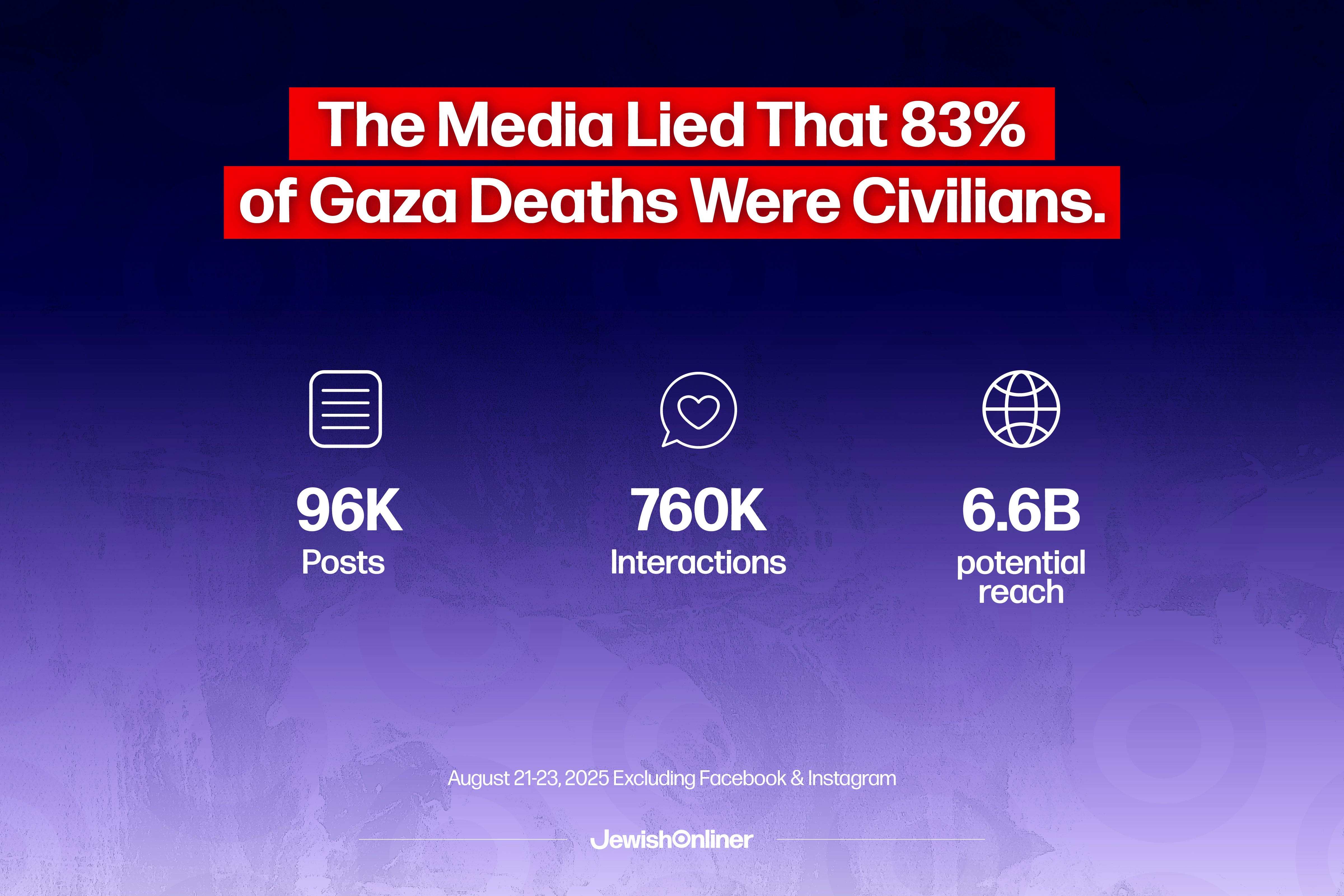 According to a comprehensive social media analysis conducted by Jewish Onliner from August 21-23, 2025, posts containing the keywords "83%” (or "83 percent) along with "Gaza" or "Palestinians," generated 96,700 posts with 759,700 interactions and a potential reach of 6.6 billion people. The narrative was heavily pushed by influencers such as Abier Khatib, who celebrated Hamas's October 7 massacre and has promoted libels about Israel harvesting the skin of Palestinians, and Aaron Maté, a journalist previously identified as a prolific spreader of Syria-related disinformation.