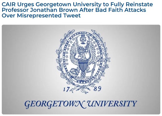 The Hamas-linked Council on American-Islamic Relations (CAIR) issued a strong defense of Brown, arguing that criticism of his call for Iranian strikes represented a "willful misreading of his intent." CAIR wrote that "punitive action" against Brown contradicted Georgetown's values, warning that "universities must not allow their disciplinary processes to be hijacked by ideological pressure campaigns or online outrage mobs." This characterization remarkably frames legitimate concern over a professor hoping for attacks on U.S. military bases as an "outrage mob."
