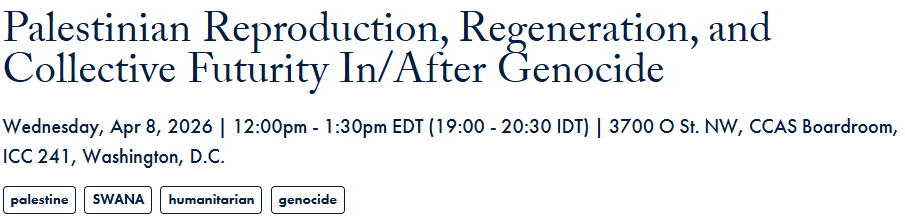 April Event Focuses on “Palestinian Reproduction” After “Genocide”
