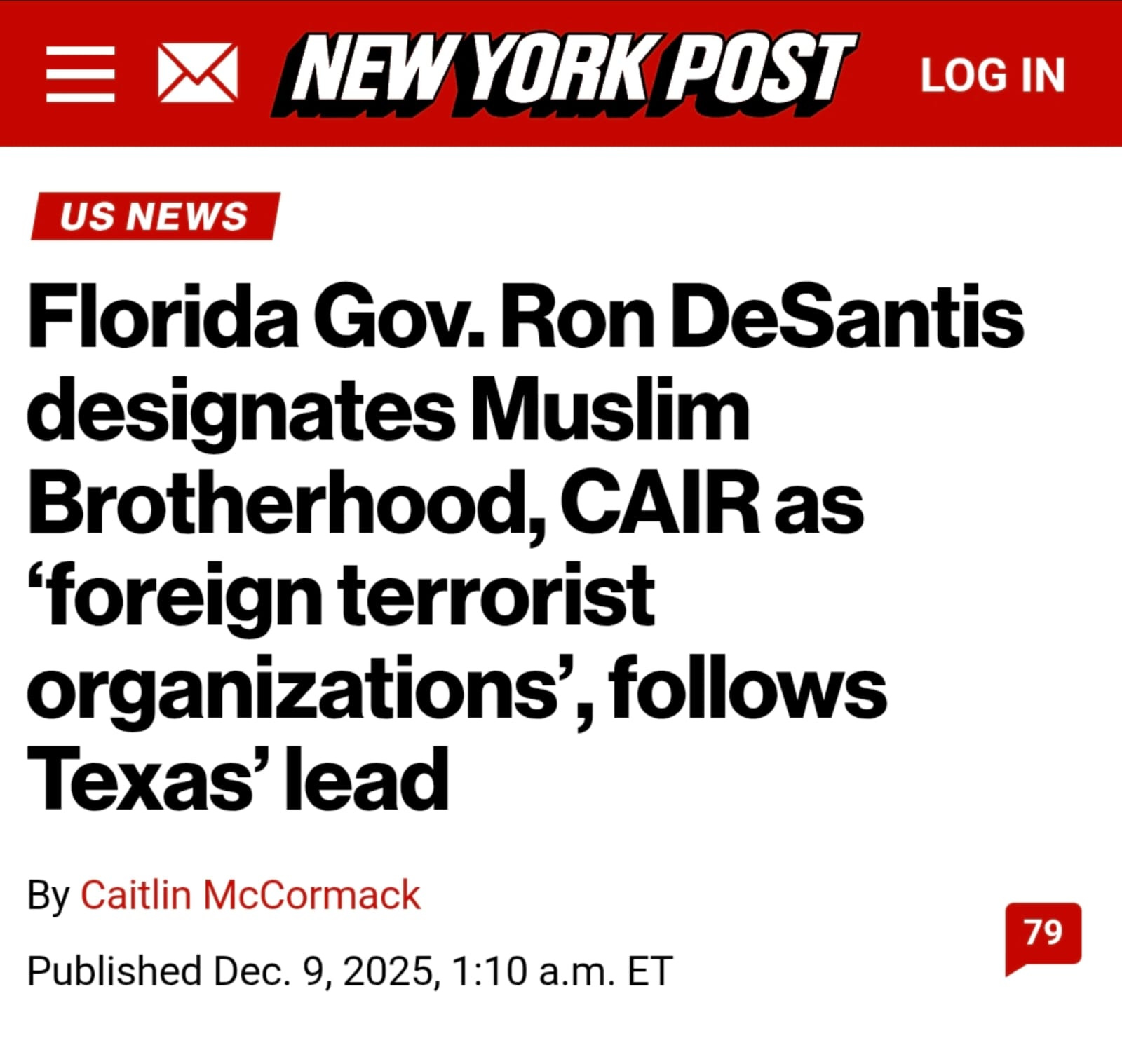 Both Texas Governor Greg Abbott and Florida Governor Ron DeSantis have recently designated CAIR as a terrorist organization in their respective states.