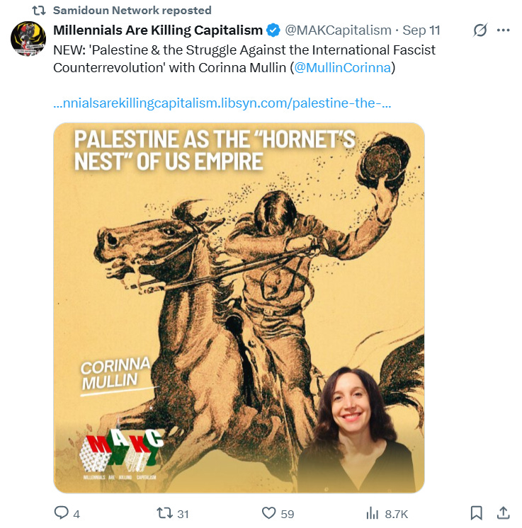 Additionally, one day after Charlier Kirk was assassinated, the U.S.-designated terror group Samidoun posted a message on X entwining the pro-Palestinian movement with the “International Fascist Counterrevolution.”