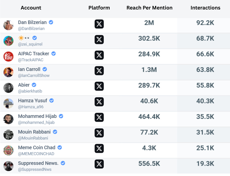 Other prominent spreaders include @zei_squirrel, a far-left account famous for conspiratorial anti-Israel threads, and “AIPAC Tracker,” a far-right channel that wraps white-nationalist talking points in policy jargon. Muhammad Hijab, a British Islamist influencer with a large online following, amplifies the claim while mixing anti-Zionist rhetoric with classic antisemitic tropes. The account “Suppressed News,” which advertises itself as an outlet for “unfiltered truth,” regularly pushes pro-Hamas narratives and fabrications about Israeli military actions. These accounts are united, not by shared politics, but by a willingness to spread lies and a shared hate for Jews and Israel.