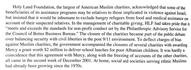 The same textbook praises the Islamic African Relief Agency seven years after the U.S. government designated the charity for ties to bin Laden. Notably, Natalia Suleiman, who taught at Brighter Horizons from 2002 to 2010, worked for IARA in Sudan in the 1990s and later served as administrative assistant to Shukri Abu Baker, the convicted CEO of the Holy Land Foundation.