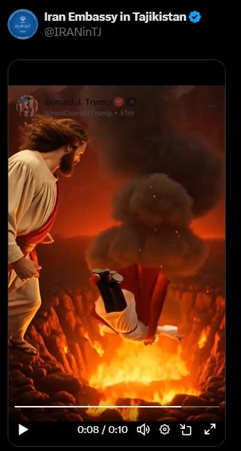Iranian Embassy in Tajikistan Posts AI Video of Jesus Violently Attacking Trump