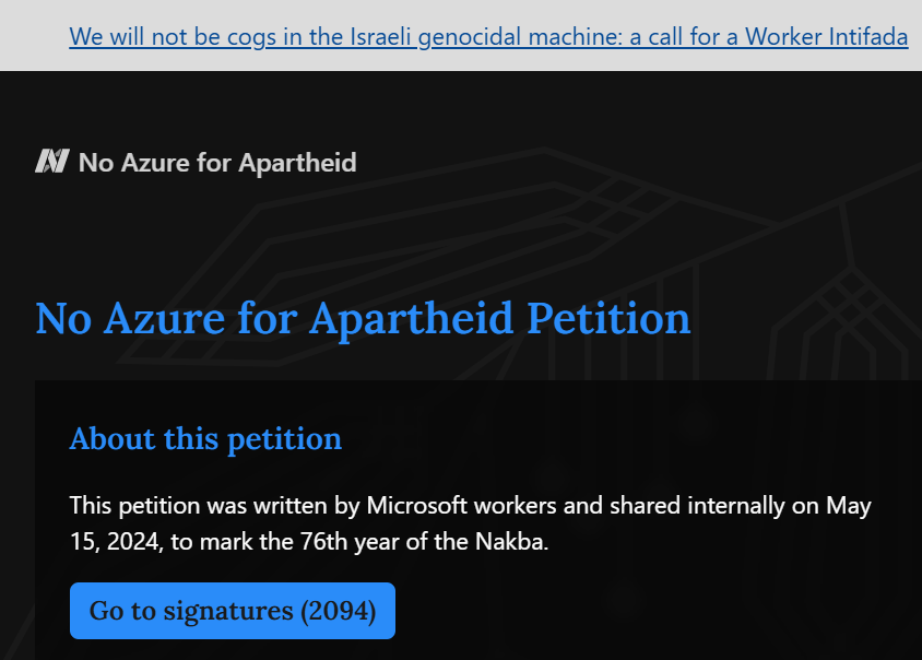 Both Hattle and Fameli also signed an internal Microsoft petition called "No Azure for Apartheid Petition," which was circulated among company workers on May 15, 2024.