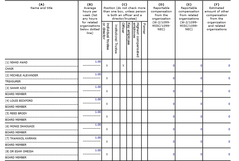 Board member Nihad Awad co-founded CAIR and serves as its executive director. According to DAWN's Form 990, Awad serves as Chair of DAWN's board, though the organization's website lists him only as a board member without specifying this leadership position. According to the Anti-Defamation League, some of CAIR’s current leadership had early connections to organizations allegedly affiliated with Hamas. The Investigative Project on Terrorism reported that Awad participated in a 1993 summit of U.S.-based Hamas members and supporters. In a 1994 statement, Awad said: “I am in support of the Hamas movement.”