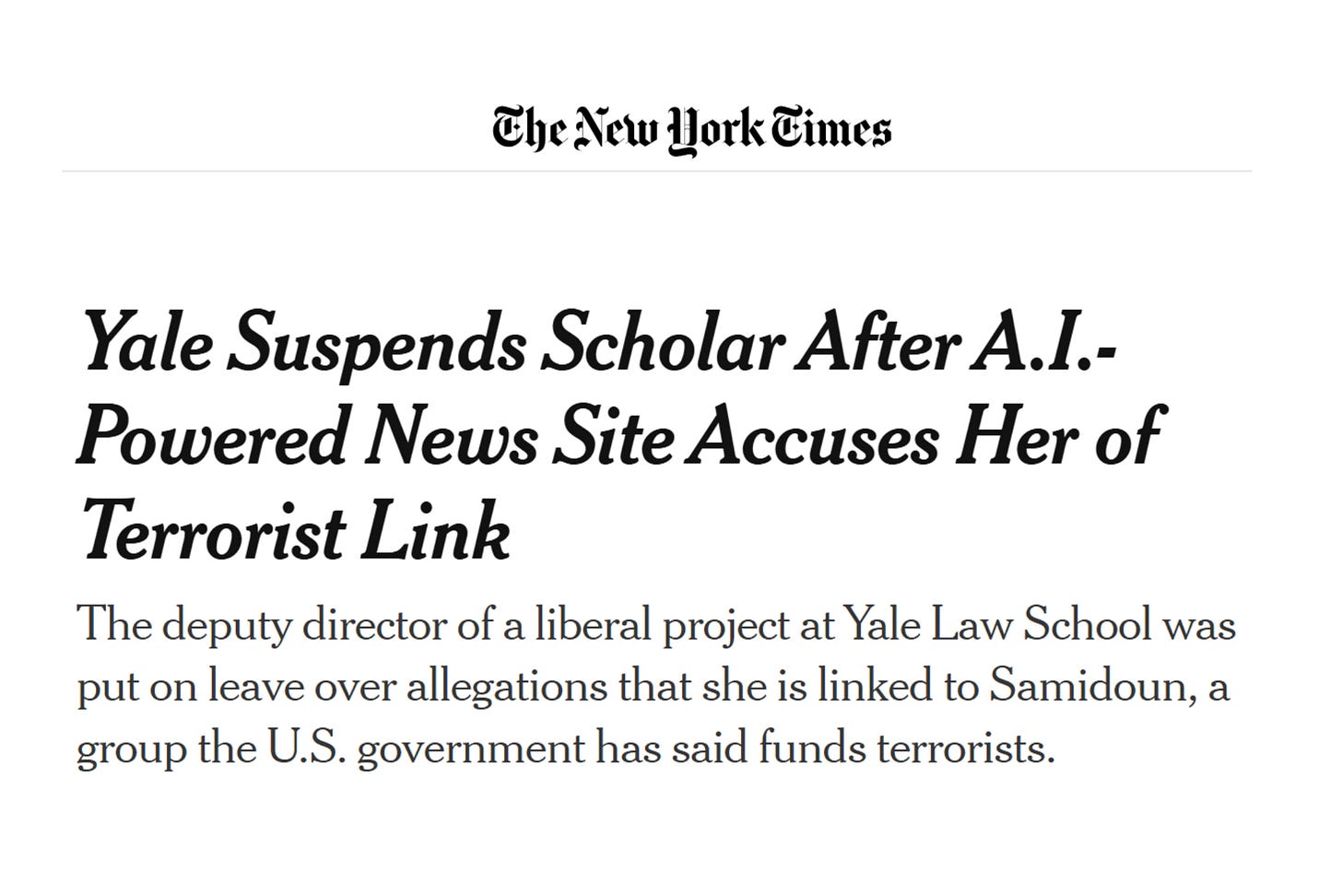 NYT Covers Jewish Onliner’s Exposé on Terror-Tied Yale Scholar