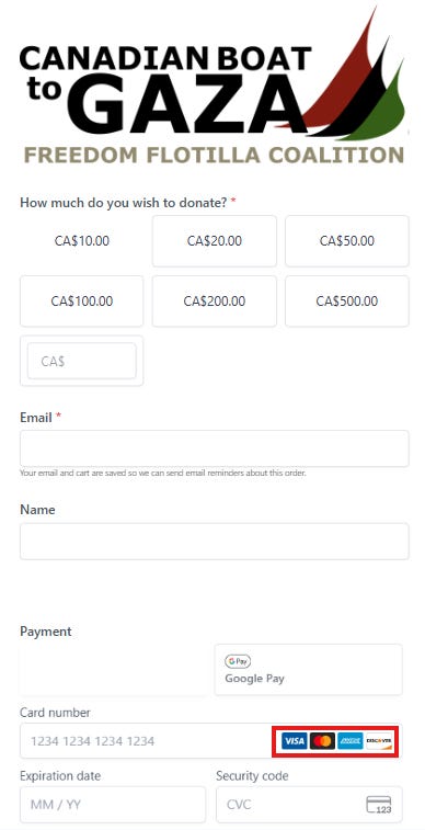 Additionally, Jewish Onliner's review found that some of these platforms also facilitate fundraising for the Freedom Flotilla Coalition (FFC), of which Zaher Birawi is a founding member, which could raise sanctions-compliance questions depending on the relationship between the entities.