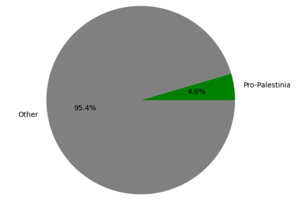 Explicit solidarity expressions (”Free Palestine,” “Ceasefire Now”) represented a minority of posts, with 7.3% on Telegram, 12.8% on Reddit, and 5% on Twitter.