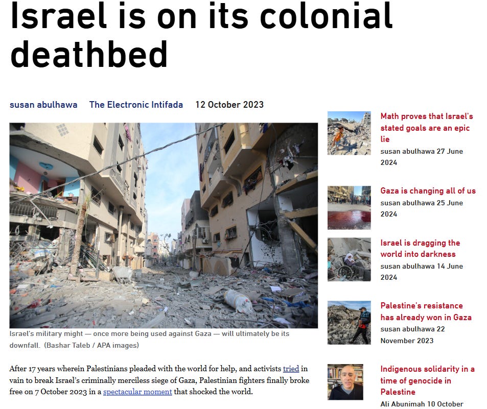In social media posts, Abulhawa has referred to Israelis as “rootless, soulless ghouls” and described the October 7 attacks, which killed over 1,200 Israelis, as a “spectacular moment.” She also characterized the Gaza war as a “Jewish supremacist slaughter,” writing “these sons of Satan will taste what they meted to us.”