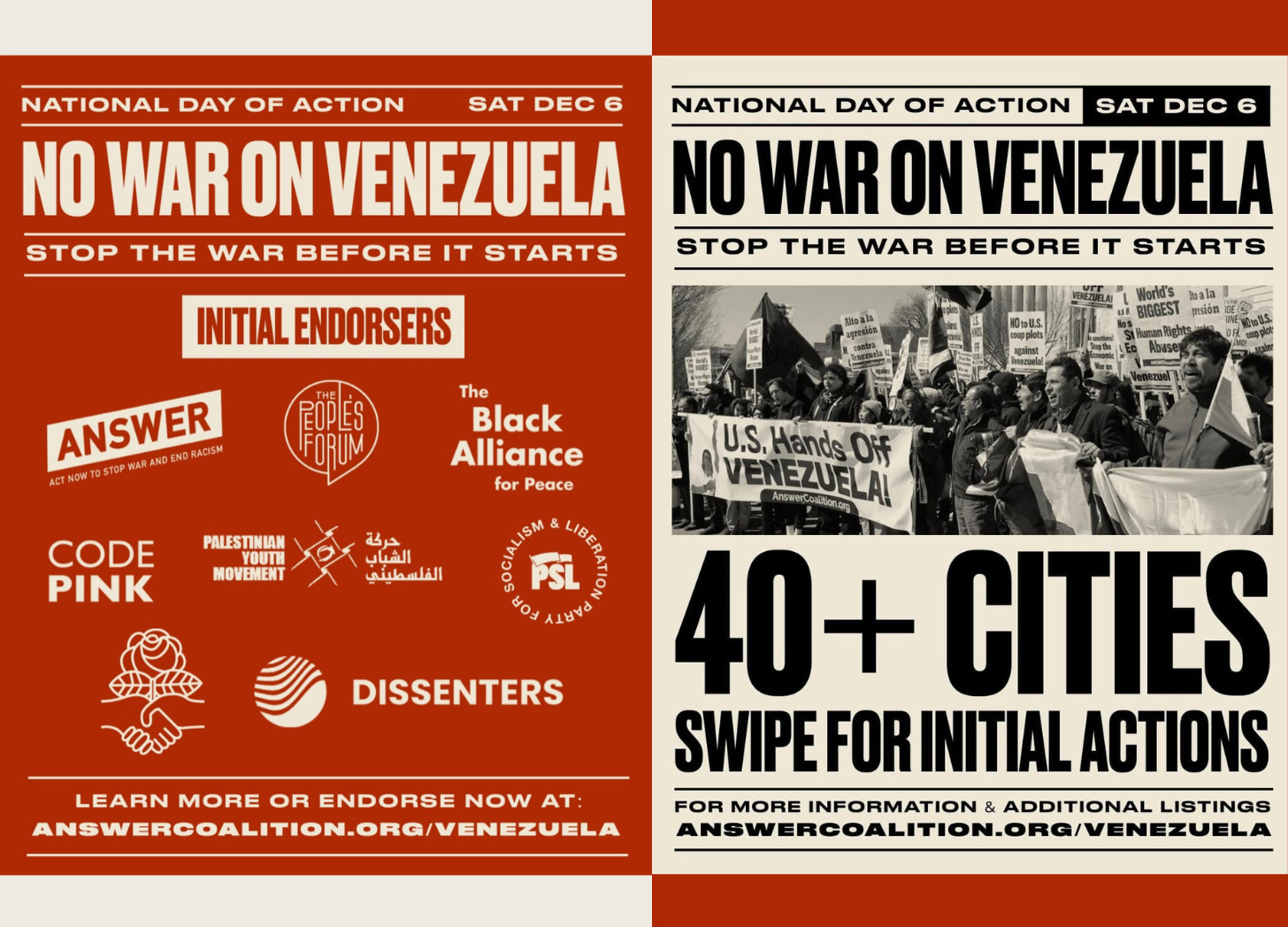 The coalition, including organizations under congressional investigation, to mobilize demonstrations on Dec. 6 across 40 states as Trump administration escalates pressure on Maduro