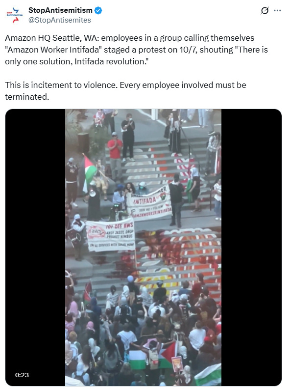 Protesters at Amazon HQ Chant “One Solution, Intifada Revolution”