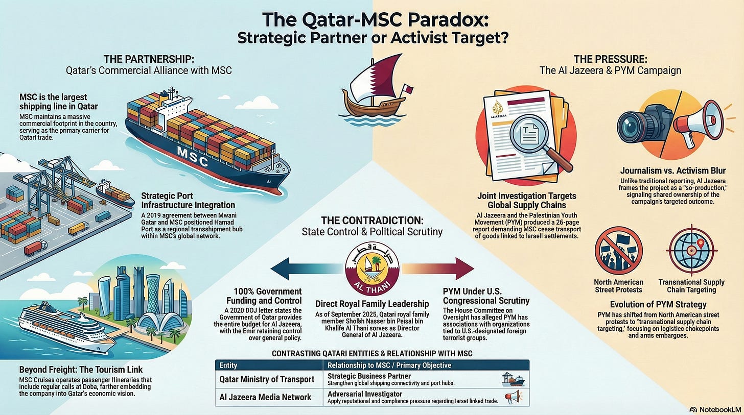 That makes MSC’s ties to Qatar especially relevant. Qatar’s state ecosystem has promoted MSC as a logistics partner, even as a state-run Qatari media network joins a campaign targeting the company.