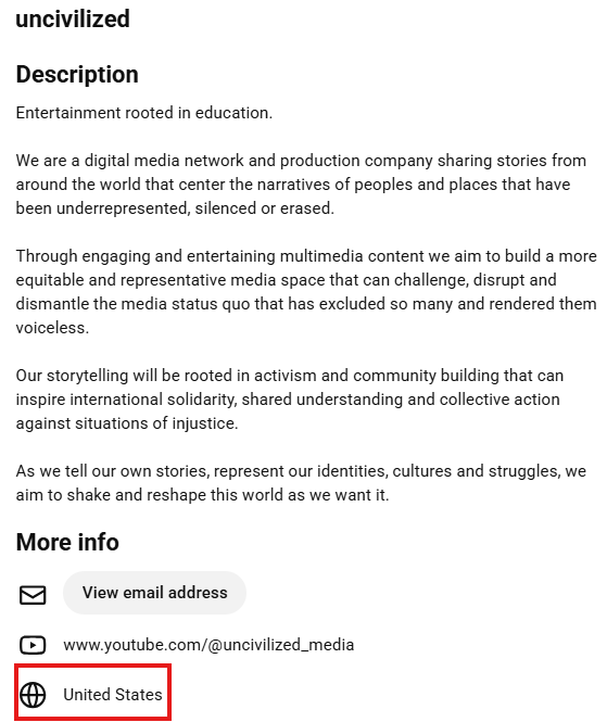 Uncivilized presents videos addressing themes of injustice, inequality, and systemic critique—messaging calibrated to resonate with Western audiences skeptical of institutional authority.