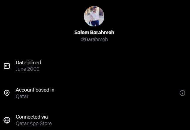 Additionally, the X account of co-founder and editor Tala Kaddoura indicates that she is based in Qatar, and the X account of founder and creative director Salem Barahmeh also indicates he is based in Qatar. Barahmeh's online bio lists prior work as a Policy and Public Affairs Advisor at Portland Communications in London. The Bureau of Investigative Journalism previously reported that Portland Communications outsourced Wikipedia editing for high-profile clients, including the state of Qatar.