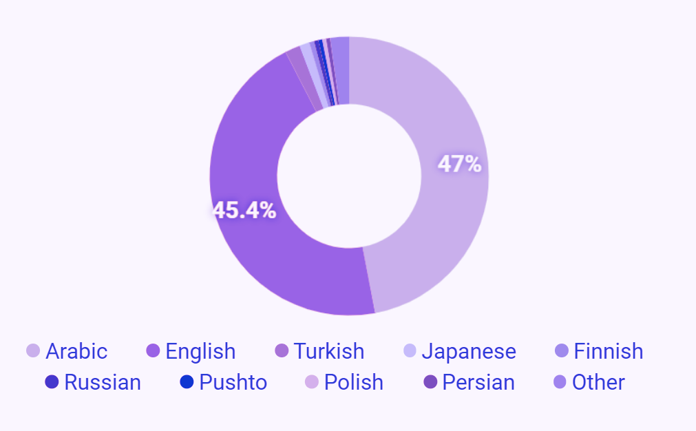 However, the research exposes the foreign-driven nature of this English-language campaign, with nearly half of all posts written in Arabic and originating from users across the Middle East, suggesting a coordinated effort to manipulate English-speaking audiences through cross-linguistic influence operations.