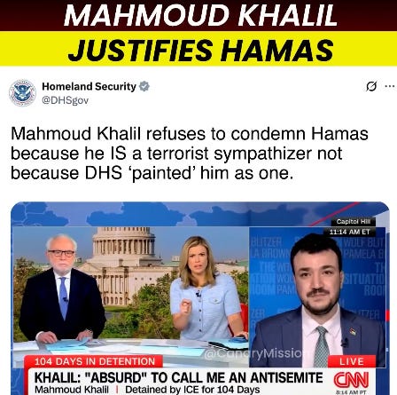 Khalil is a notorious radical activist who was arrested by ICE agents on March 8, 2025, after the Department of Homeland Security determined he had "led activities aligned to Hamas, a designated terrorist organization." Khalil was the lead negotiator for the violent Columbia encampment that took university workers hostage and featured weapons, antisemitic propaganda, and calls for Israel's destruction. He has openly justified Hamas terrorism, stating "We've tried armed resistance, which is legitimate under international law, but Israel calls it terrorism." During protests, his group distributed materials reading "DEATH TO AMERICA" and "LONG LIVE THE INTIFADA."
