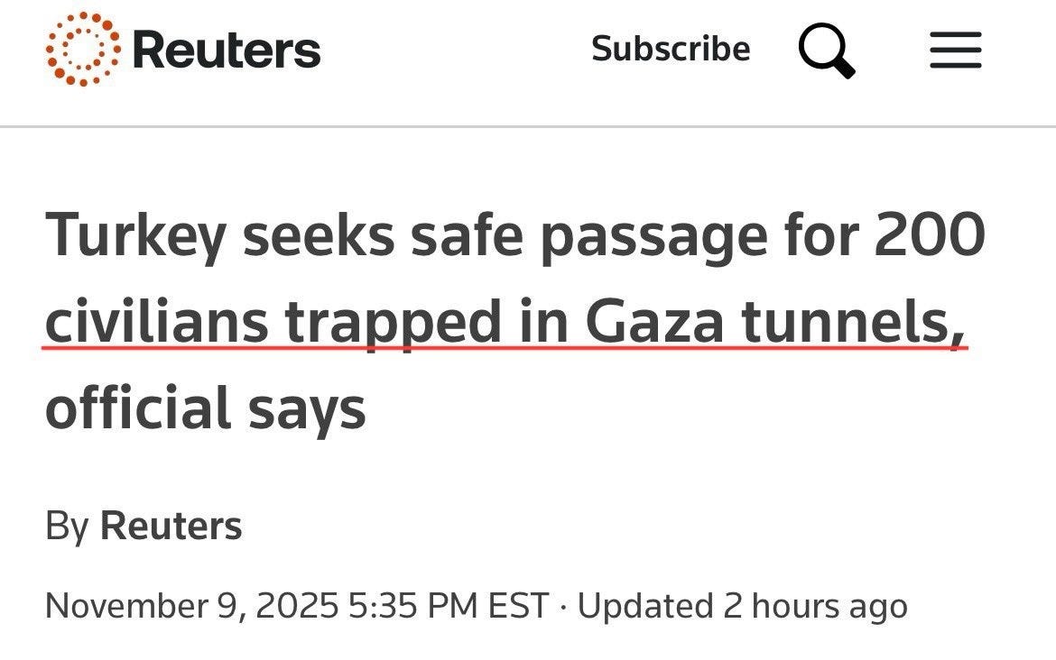 The piece quoted a Turkish official seeking “safe passage of some 200 Gazan civilians currently trapped in the tunnels” without challenging or clarifying this characterization.